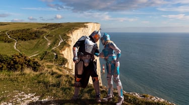 A cluster of tourists gathered near the cliff edge, phones extended for photos while the wind tried to claim their hats. Several stepped back when they noticed us, though whether from the armor or their sudden awareness of the drop behind them remained unclear. The Coastguard patrol nodded respectfully as they passed—professionals recognizing professionals, even when one wears beskar and the other hi-vis jackets.