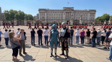 Two Mandalorians at the Changing of the Guard. The King's Guard didn't blink. Ji'ana Fenix and HK7335 take their armor where it was never supposed to go. First stop: London.