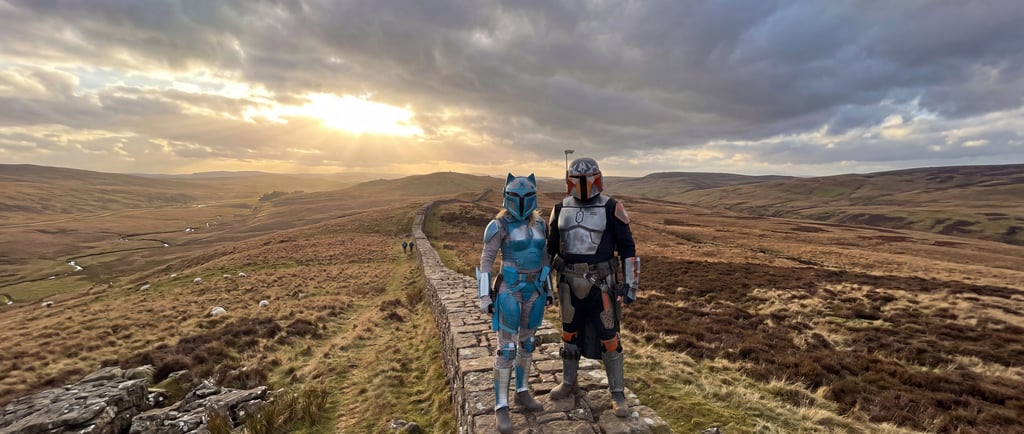 Hadrian's Wall cuts across northern England like a scar in the landscape, seventy-three miles of engineered stubbornness that held barbarians at bay for three centuries. Standing here in full beskar'gam, I can appreciate their commitment to the principle that sometimes the best defense is a really impressive wall.